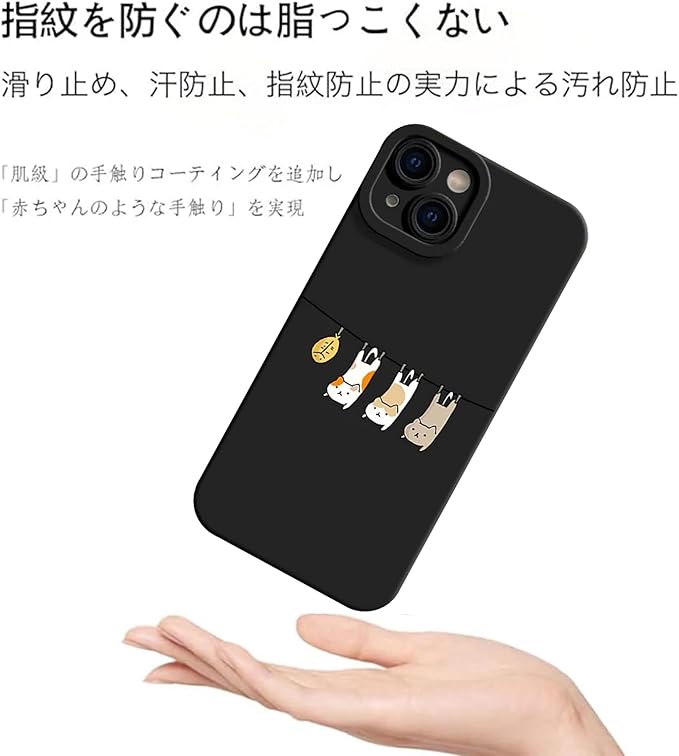Arpe ねこ 猫 ネコ iPhone 17 Pro Max 用 スマホケース イフォン 17 Pro Max 用 ケース (6.9インチ) ぶら下がっている猫 ソフト軽量 人気 可愛い シリコーン 携帯カバー (黒服,iPhone17ProMax用)