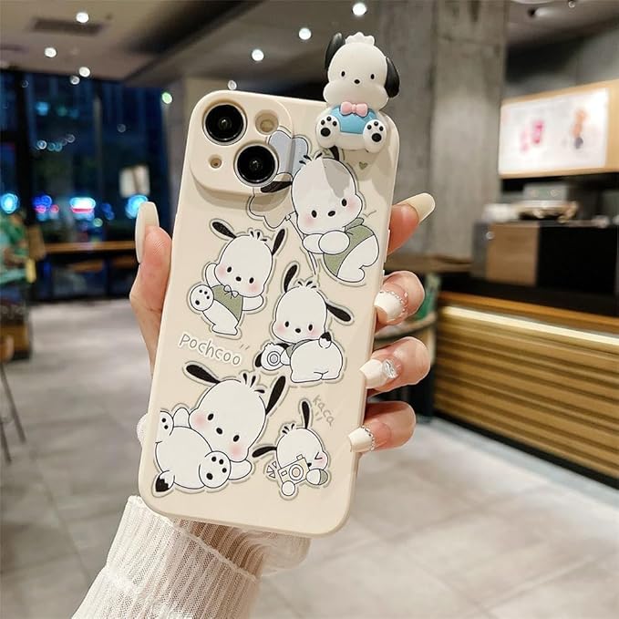 Arpe ポチャッコ スマホケース シリコーン素材 iPhone 17 Pro Max 用 ケース かわいい ポチャッコ アイフォン 17 Pro Max 用 ケース (6.9インチ) 3D キックスタンド 傷つきにくさを向上 柔らかい殻 カラー(白)