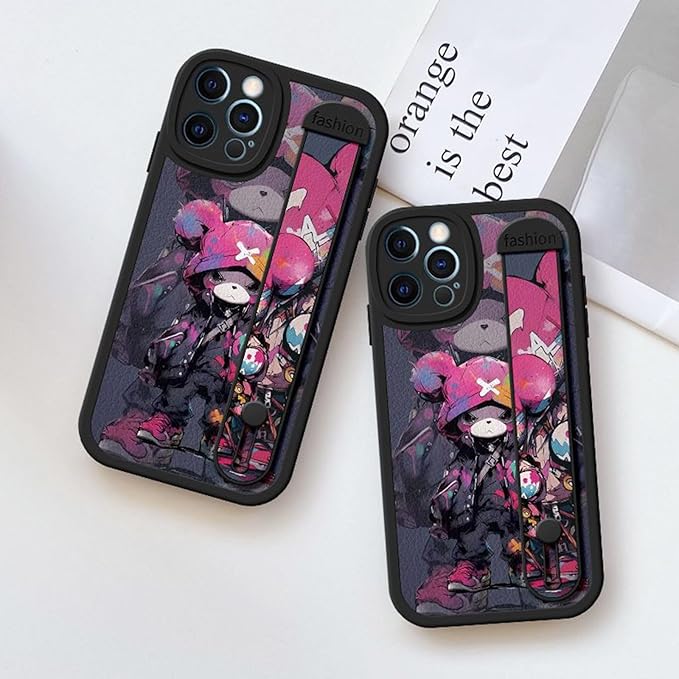 Arpe かわいい ベアブリック カウズ スマホケース iPhone 17 Pro Max 用 ケース アイフォン 17 Pro Max 用 ケース (6.9インチ) キックスタンド リストレット 傷つきにくさを向上 カラー(紫黒)