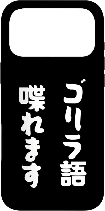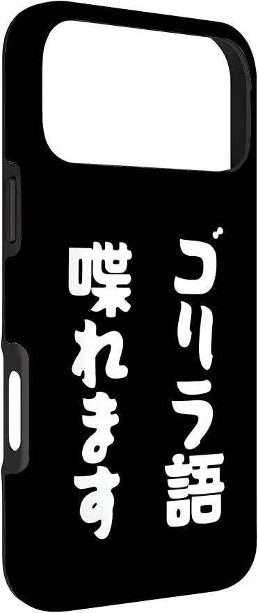 「ゴリラ語 喋れます」冗談 面白グッズ ごりら 猿 サル さる Gorilla 亜種 類人猿 ギャグ 文字 おもしろ スマホケース iPhone 17 Pro Max 用