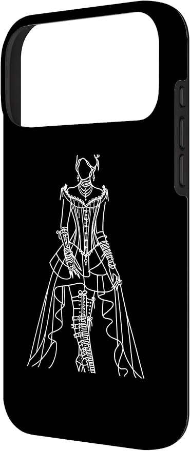 この線画モチーフは、ゴシックファッションや神秘的な芸術を愛する方のためにデザインされました。装飾的な鎧のような衣装を身に着けたヒューマノイドの姿を描いています。Jimbeels