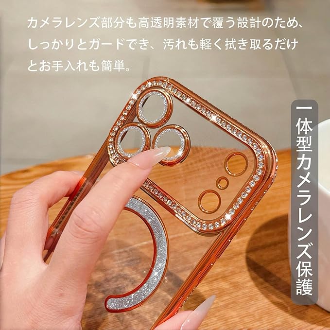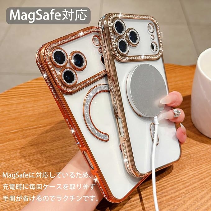 可愛い キラキラ ラインストーン スマホカバー、MagSafe対応機能を備えているスマホケース。カメラレンズ保護 耐衝撃 透明 耐黄変 スマホケース