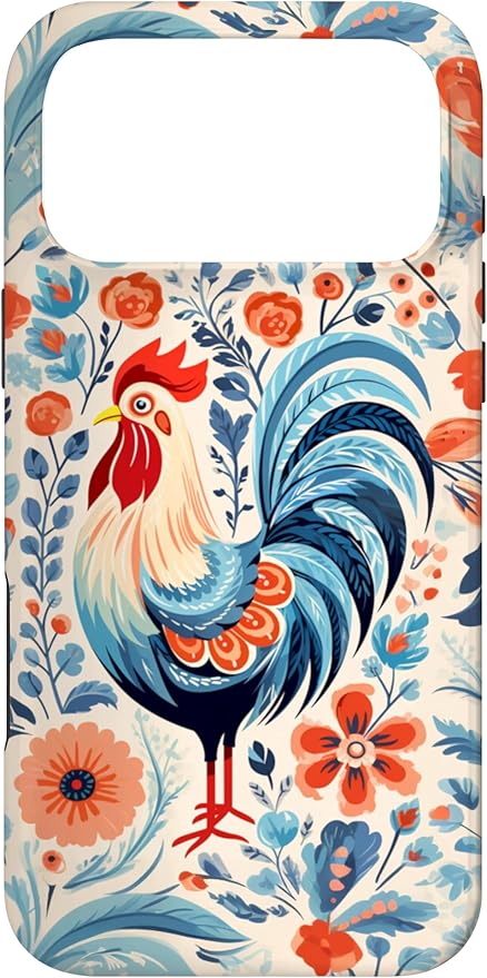 鶏 花柄 ヴィンテージ ニワトリ 農場の動物 スマホケース iPhone 17 Pro Max 用