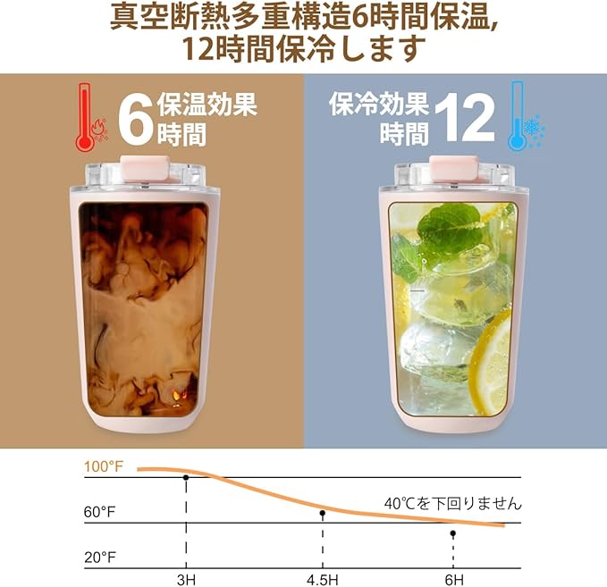 【保温・保冷効果が持続する真空断熱構造】Philorn タンブラーは保温6時間、保冷12時間を保持できます、真空断熱2層構造でしっかり温度をキープしてくれるので、夏は冷たい飲み物が結露せず、冬は熱い飲み物でも外側が熱くならないでシーズン問わず快適に使用できます。