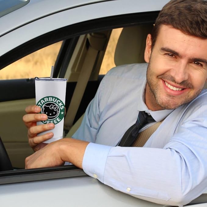 ハローキティ マグカップ ストロー&ストローブラシ付き マグカップ コーヒーカップ 600ML コンビニカップ タンブラー ステンレス製 保冷 保温 車用 蓋付き 持ち運び 水筒 大容量 直飲み キャラクター かわいい