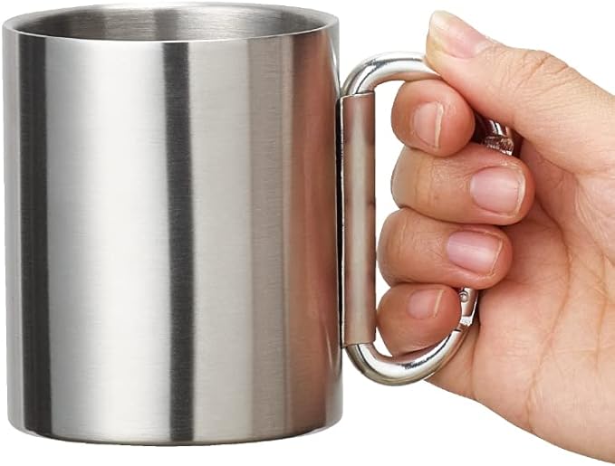 持ち歩きしやすいカラビナハンドルのステンレスマグです。 持ち手にはカラビナを使用しているので、折りたたんで収納が可能です。 デスクでマグとして使用できるのはもちろん、 アウトドア時にもかさばらないで持ち運びができ、大活躍のマグです。 本体色はシンプルなシルバーになります。