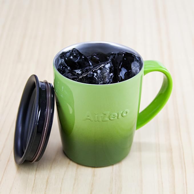 ●㋱3,630●色:グラデーショングリーン(オリーブグリーン、カーキグリーン、グリーン 系)● JANコード: 4549092003903 、●品番:AZ-MC300GRG 、●サイズ:約11.5 10 高10.2(蓋付10.5)cm 、●本体飲み口内径:約8.0cm、●重量:約200g 、●満水容量:約300ml(実容量はやや少なめになります)●保温効力:70度以上(1時間)、 ●保冷効力:5度以下(1時間) 、●材質:本体/ステンレス鋼、 ポリプロピレン、 ふた・せん/ポリプロピレン、 パッキン/シリコンゴム 、●原産国:中国、※「AirZero(エアゼロ)」は、株式会社グッドフェイスが企画・監修し、日本基準の厳重な品質管理の下、 中国工場で製造しています。