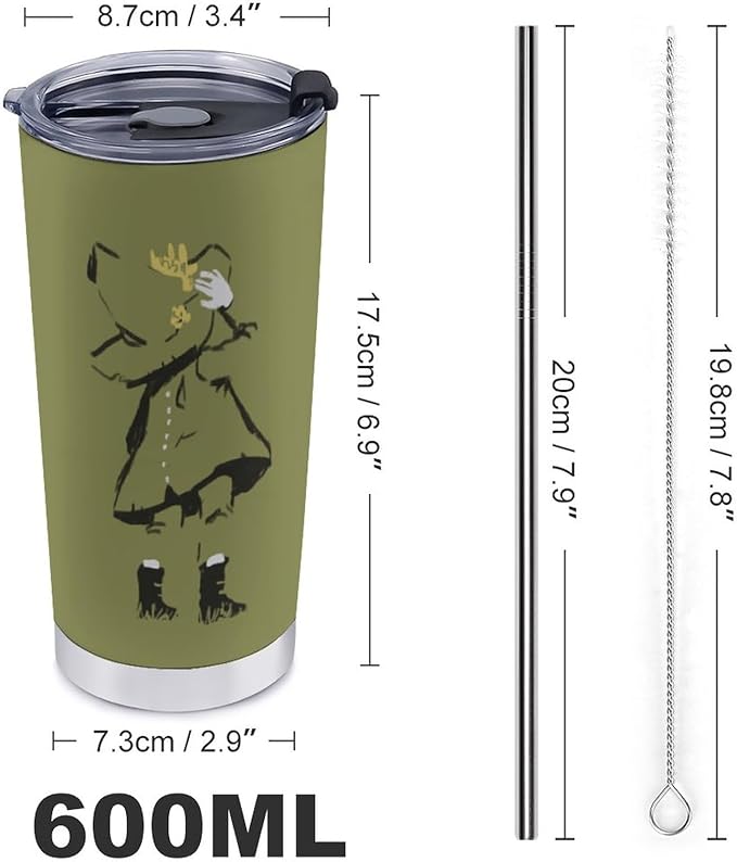 スナフキン マグカップ ストロー&ストローブラシ付き マグカップ コーヒーカップ 600ML コンビニカップ タンブラー ステンレス製 保冷 保温 車用 蓋付き 持ち運び 水筒 大容量 直飲み キャラクター かわいい