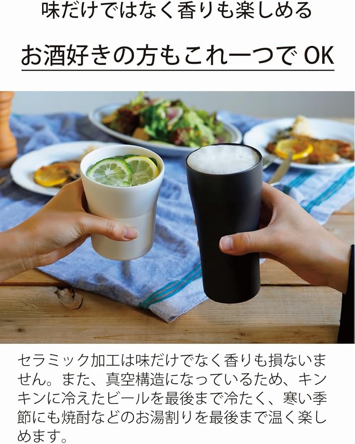 【内外面セラミック加工】金属の嫌なにおいがなくドリンク本来の香りや味わいを最後のひと口まで堪能することができる