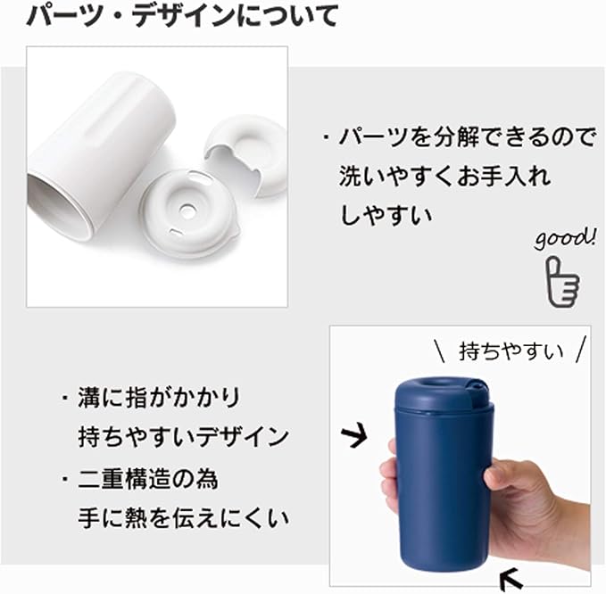 持ったときに熱くならないのも良い。使い終わったら分解して洗えるので衛生的なのもgood。