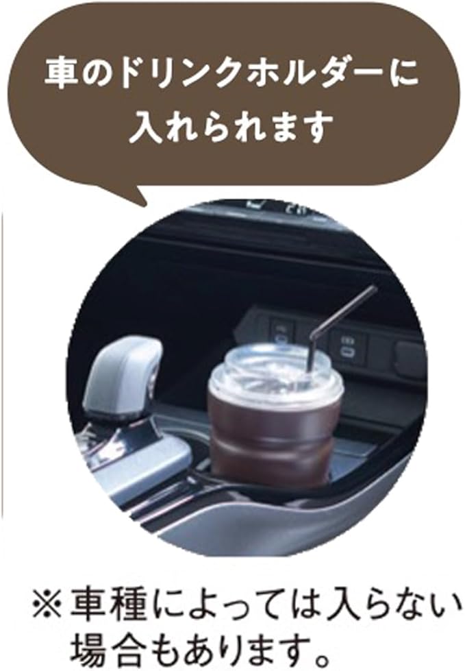 コンビニやコーヒーチェーン店のカップが入る、持ちやすい形状の真空ステンレス製タンブラー。食洗機対応塗装、車内ドリンクホルダー対応。