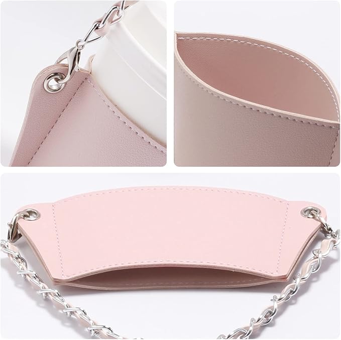 YUYAKESHI ドリンクカップホルダー カバー 革 カップホルダー チェーン式 持ち歩き ドリンクホルダー カップドリンク カフェカップ ドリンク用 コンビニコーヒー(グリーン+ピンク)
