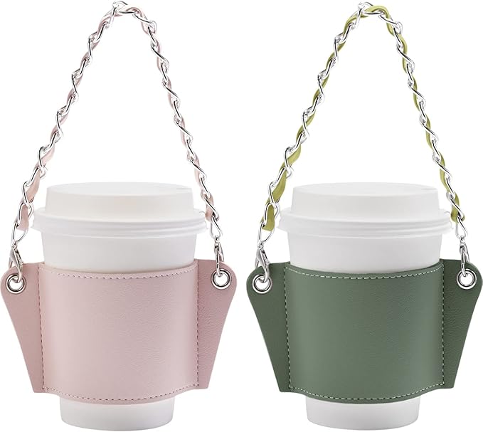 ●スタイル:5つの色が選択でき、革製カップホルダー、丈夫なチェーン式のストラップ、スタバなどほとんどの店で使うドリンクの紙コップに適用します。飲み口が8~10Cmのカップにご利用いただけます。