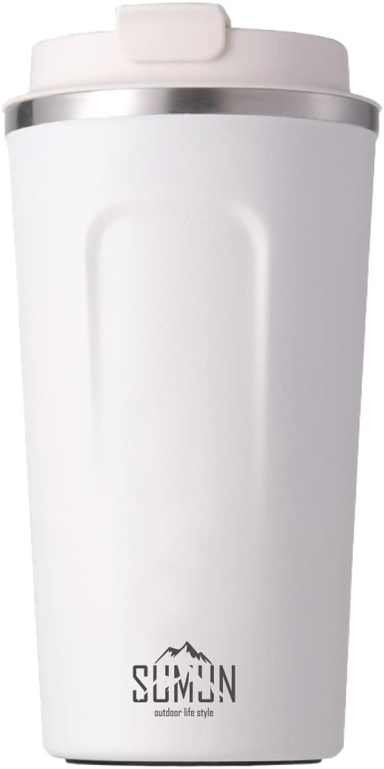 タンブラー ふたつき 真空断熱 510ml ステンレス 保温保冷 二重構造 直飲み コーヒー ダイレクト カフェ風 飲み口 男性 女性 学生 (ホワイト 510ml)