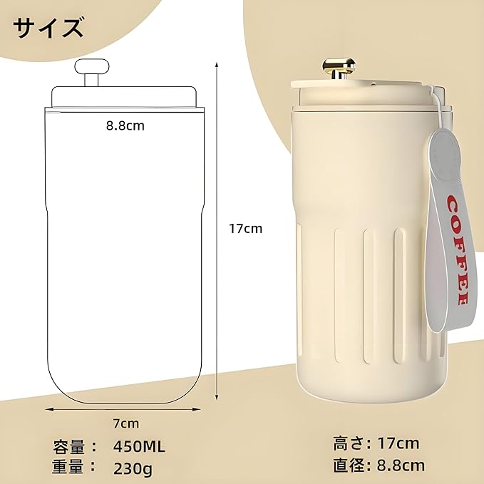 5、タンブラーの容量450ml、重量:230g、底部幅:7cm、高さ:17cm、8.8cm大口径のデザイン実現さ手を入れて洗える。タンブラーは自分で使えるだけでなく、いいプレゼントとして相手を贈られます。もし購入された商品にはなにか問題と不満がありましたら、いつでもご連絡くださいMYEEDA。カスタマーサービスを提供します、お気軽にお問合わせてください。