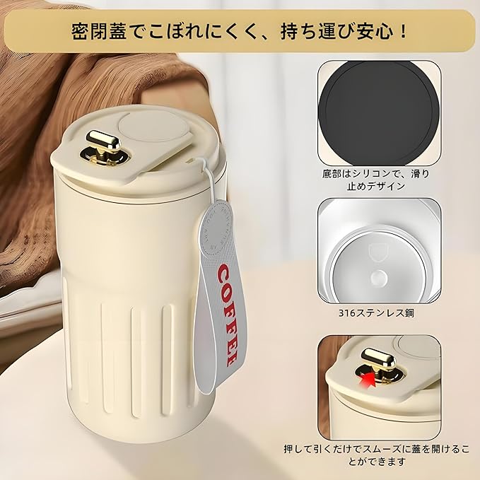 特徴 こぼれない, コーヒータンブラー, 手を入れて洗える, 真空断熱, 蓋付きタンブラー