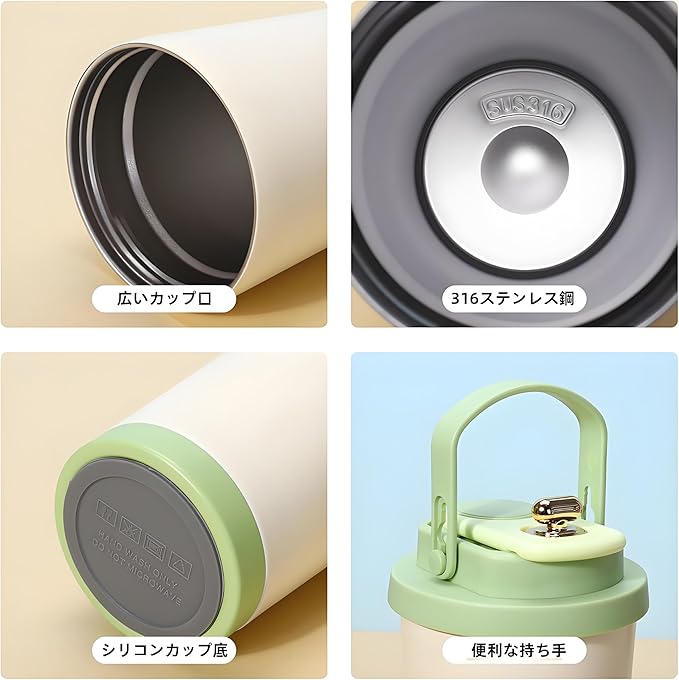 特徴 タンブラー 蓋付き, 大容量, 手を入れて洗える, 持ち運び 持ち手付き, 真空断熱