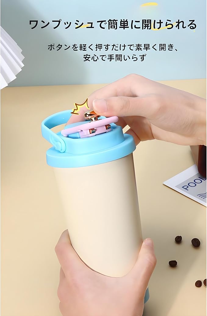 3、持ち運び 持ち手付き タンブラー:持ち手付きタンブラー、持ち運びに便利、家庭、ビジネス、旅行、出張などのシーンと遠足、釣り、登山、自転車、キャンプ、バーベキューなど様々なアウトドア活動に最適です。持ち手隠れるので、使わないときはしまっておくことができ、場所を取らず、とても便利です。注:コーヒーカップをバッグや他の容器に入れる場合は、漏れを防ぐために蓋がしっかりと閉まっていることを確認してください。