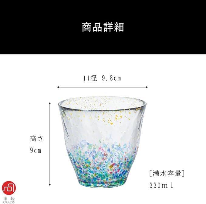 サイズ:約最大9.8(口径9.8) 高さ9cm(1個当たり)/重量:約285g(1個当たり)/容量:約330ml(1個当たり)/セット内容:ロックグラス(まつり金彩・はなび金彩)/各1個