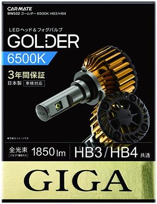 カーメイト 車用 ヘッドライト ハイビーム用 フォグライト LED GIGA ゴールダー HB3/HB4共通 6500K 1850lm 日本製 車検対応 3年間保証 BW522