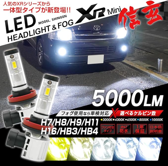 LED ヘッドライト フォグランプ 信玄XR Mini H8 H9 H11 H16 一体型 オールインワン 3000K 4300K 6500K 8000K 10000K 12V