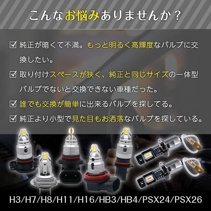 LED 汎用 一体型 フォグランプ H8 H9 H11 H16 ホワイト 6500K 3000LM 高輝度 爆光 明るい フォグ 小型 交換用 取付簡単