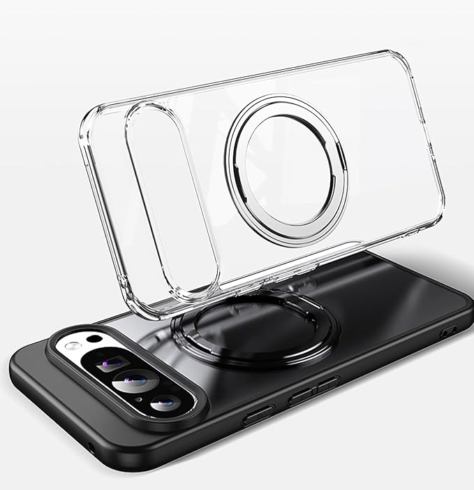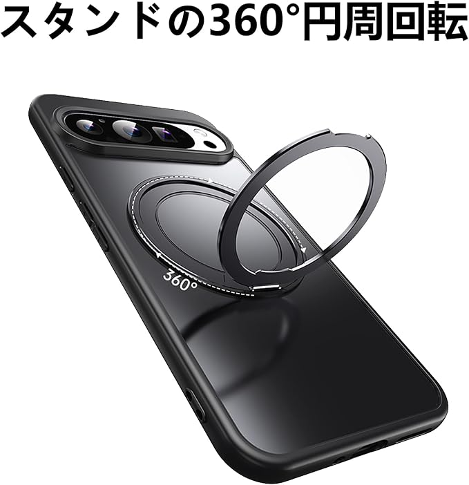 【強化フィルム2枚付き】HCXLYP Google Pixel 9A ケース MagSafe対応 グーグル ピクセル 9a カバー リング スタンド 多機能 360度回転 ぐーくるぴくせる9aケース ワイヤレス充電対応 米軍MIL規格 スマホケースひくせる9a 耐衝撃 クリア