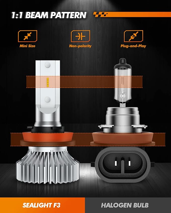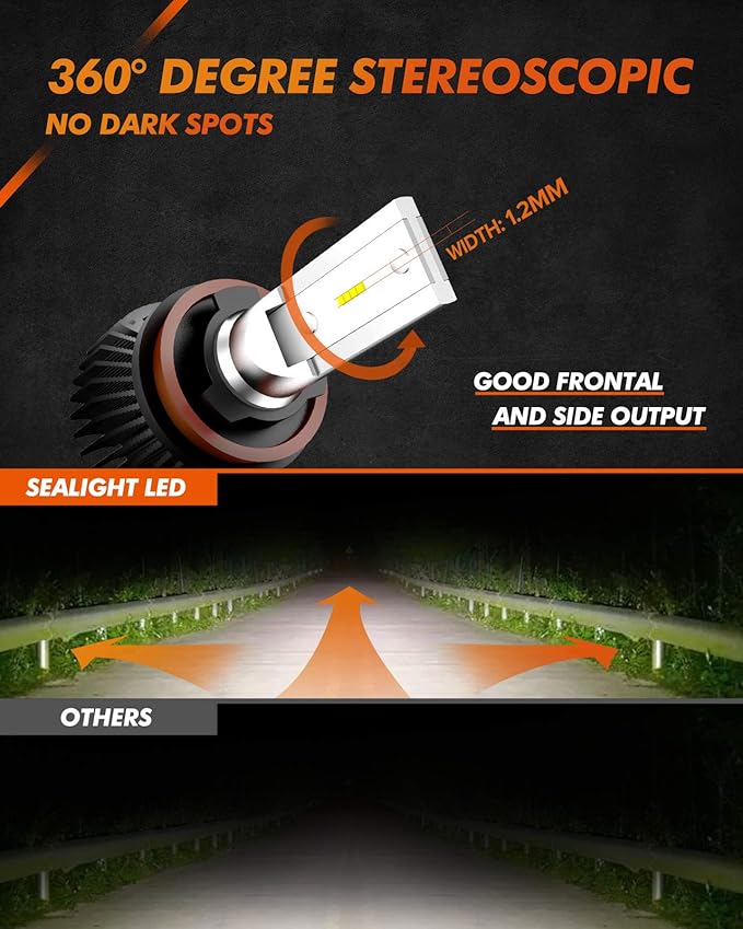 【99%の車両に対応】SEALIGHT h11 led フォグランプは、99%の車種に適合し、H16およびH8モデルにも対応です。注:内蔵抵抗により、99%の車種に対応。一部の車種では車の電気配線上では球切れと誤検知してしまうた、警告灯/消灯/点滅現象が解消されない可能性がございます。