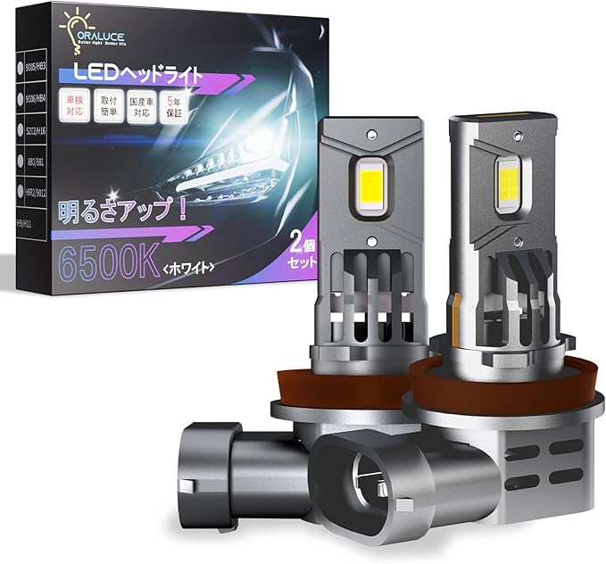 ORALUCE H8 H11 LED ヘッドライト 車検対応 爆光 14000lm 30W*2 高輝度CSPチップ搭載 6500K ホワイト 純正サイズ 簡単取付 led h11 バルブ 高速回転冷却ファン内蔵 IP68防水&防塵 DC12V 5年保証 長寿命 2個セット