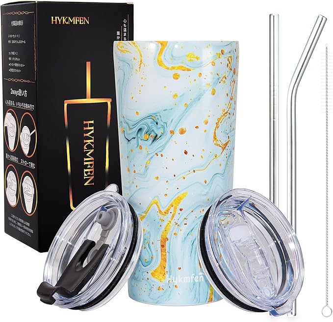 【充実のタンブラーセット】 600mlの蓋付きタンブラーセットには、2種類の交換可能な蓋と2本のストロー(直管と曲がりタイプ)、さらに専用ストローブラシが含まれています。多様なシーンで便利に使え、通勤・通学、アウトドアやオフィスにも活躍
