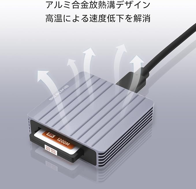 【冷却と安定性に優れた設計】このアダプターは、動作中に発生する可能性のある過熱の問題を効果的に解決するアルミ合金ヒートシンク設計を採用しています。長時間のデータ転送はデバイスを過熱させ、転送速度に影響を与え、場合によってはデータ損失につながる可能性があります。この冷却設計により、高速転送中でもカードリーダーの温度を安定させ、過熱によるデータ遅延や速度低下を防ぎ、長期的な信頼性を向上させます。