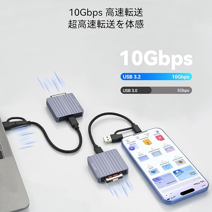 ELUTENG CFexpress Type B カードリーダー 最大10Gbps メモリーカードリーダー USB-C/USB-A 2-in-1 2TB 大容量 USB3.2 ケーブル付属 タイプ B CFexpress アダプター Windows/Mac/Linux対応