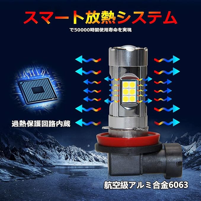 【製品情報】:H8/H9/H16 兼用、LED フォグランプ、ホワイト 純白色 6000K、高品質 LG 27SMD(側面24SMD+プロジェクター正面3SMD)を搭載、悪天気(雨、霧、雪など)の視認性を大幅に向上させます、事故を削減し、安全運転を確保します。【ご注意】本商品は日本車専用で、欧州車に使うと、取付車両によってチラつきや不点灯などの場合もあり、メーターに球切れや警告灯などエラー表示が出る場合もあります。