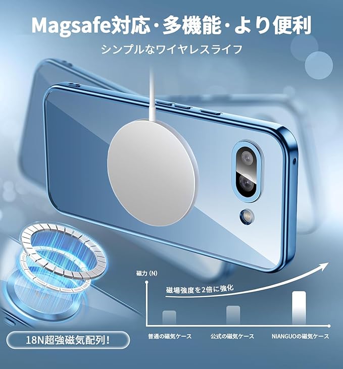 【金属光沢・CDリング・Magsafe対応】NIANGUO Google Pixel 9a 用 ケース クリア ストラップホール付き フィット感 黄ばみなし カメラ保護 ソフト ワイヤレス充電対応 マグネット内蔵 耐衝撃 耐久性 メッキ加工 軽量 マグセーフ対応 スマホケース グーグル ピクセル 9a カバー 6.3インチ(ブルー)