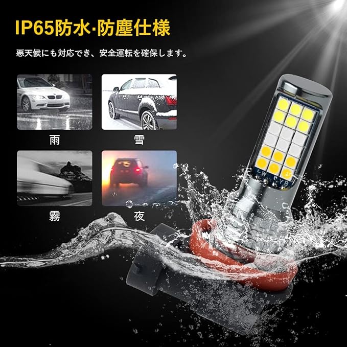【発光効率に優れ】高品質3030SMDチップ採用、均一 高効率の発光特典を持って、超輝度で普通のチップと比べ発光率はアップします。市販のハロゲンより省エネルギーの上で、明るさは大幅にアップ。夜間の走行が非常に楽になり、安全に運転しています。
