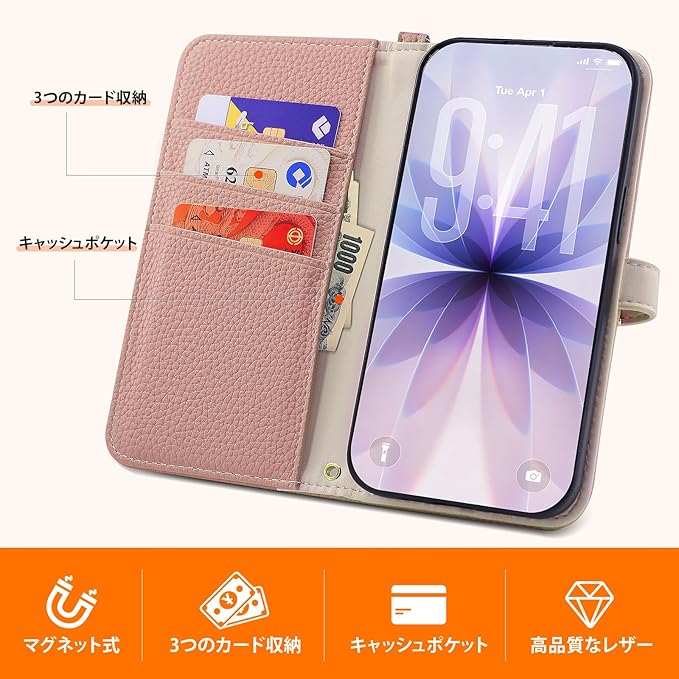 【マグネットベルト】きれいカラーベルトはマグネットなのスムーズに開け閉め、スマートフォンをしっかり守ります。肌感PUレザー と柔軟なTPUカバーと組み合わせ。厳選された革を採用しており、目に見える高級感と抜群な、職人の手で一つ一つ丁寧に仕上げることで、プレゼントとして、家族と友人に最適。