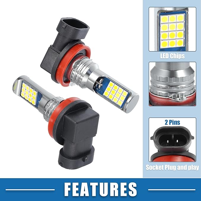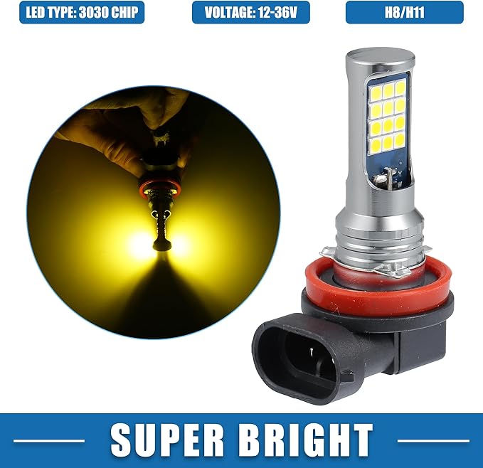 交換用 - ハイパワーH8/H11 LEDフォグライトバルブは、さまざまなサイズのH8/H11フォグライトバルブの交換用として使用できます。電球あたり24S MD 3030高輝度チップ。動作電圧:12-36V