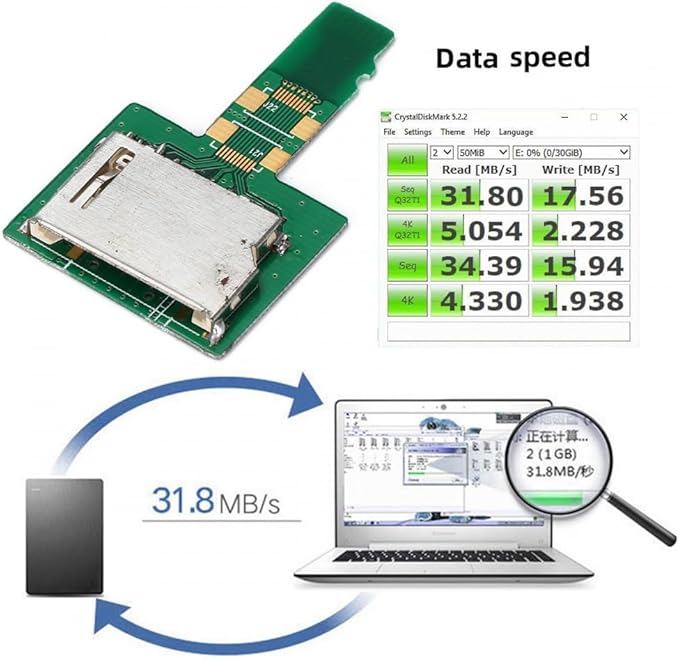 使いやすい:このSDカードからTFスロットの拡張機能は、SDリーダーをMicro SDスロットに挿入してケーブルを延長することで実現します。Micro SDからSDへの拡張アダプターは、32GBを超えるカードを簡単に認識します。