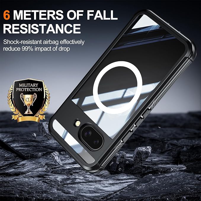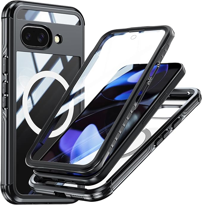 Lafunda Google Pixel 9a 用 ケース 360度全面保護 MagSafe対応 透明 スマホカバー 角保護強化 ガラスフィルム付き アウトドア 耐衝撃 黄ばみなし傷つけ防止 落下防止 ワイヤレス充電対応 Google Pixel 9a 用 マグネットスマホケース ブラック