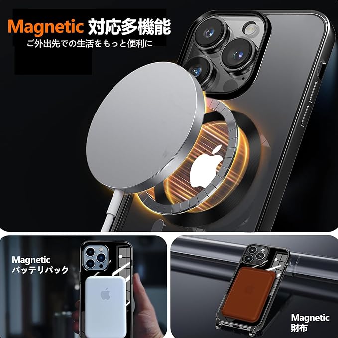 【磁気リング】:携帯ケースの磁気リングは主にワイヤレス充電に使われ、携帯電話の充電に便利です。煩雑なケーブル接続の必要がなく、携帯電話をワイヤレス充電デバイスに置くだけで充電を始められます