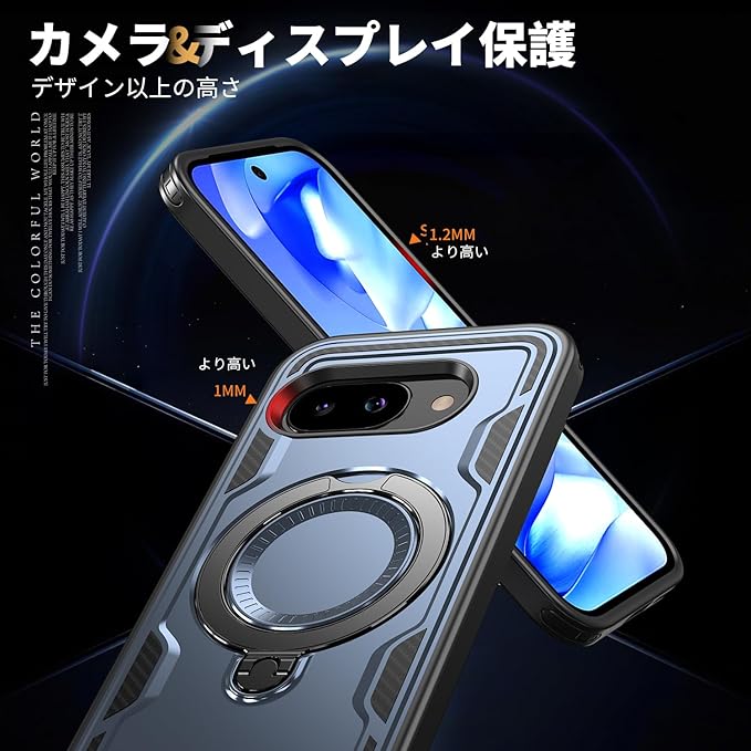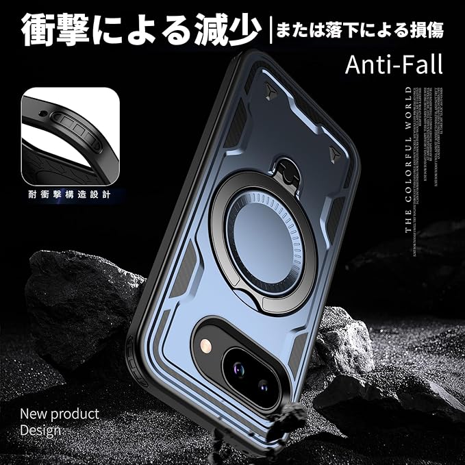 Google Pixel 9a 用 ケース 耐衝撃 スタンド付き Magnetic対応 グーグルピクセル9a カバー リング TPU+PC ワイヤレス充電 米軍MIL規格取得 スタンド機能 (ブルー)117-PX9A-09TS