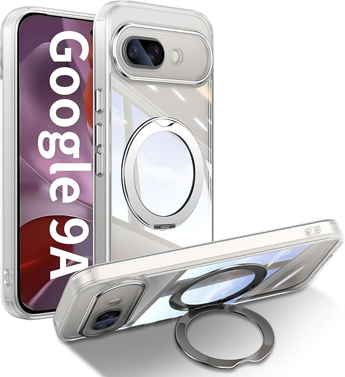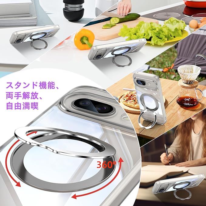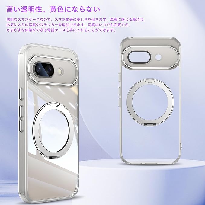 [ShinKin] スマホケース Google Pixel 9a 用 ケース カバー 透明PC + TPU素材 ケース リング付き カバー スタンド機能 スマホケース 透明レンズフィルム保護機能付き 強化された保護 携帯電話のレンズフィルム 軽量 耐衝撃 擦り傷防止 落下防止 車載ホルダー 360 回転 ケース Google Pixel 9a 用 (ホワイト)