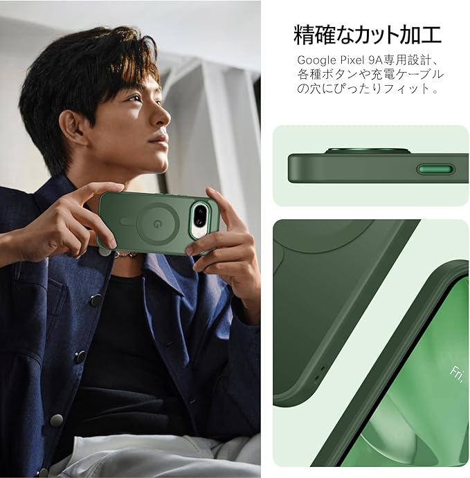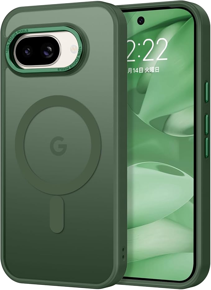 GaoBao Google Pixel 9a ケース グーグルピクセル9a ケース Magsafe対応 PC+TPU 黄ばみにくい ストラップホール付き ワイヤレス対応 滑り止め カバー 半透明マット 画面レンズ保護 指紋防止 耐衝撃 グリーン