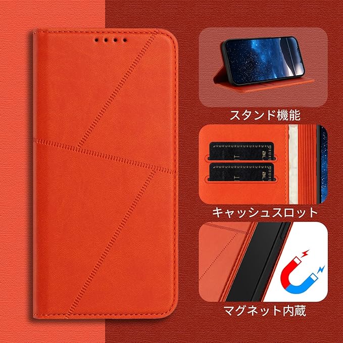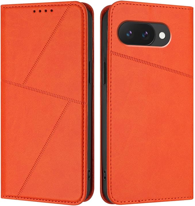 Google Pixel 9a ケース 手帳型 財布型 高級レザー カードポケット付き Kitzomi ピクセル9a 用 携帯カバー カード収納 耐衝撃 スマホケース 360度保護 マグネット式 スタンド機能[オレンジ]