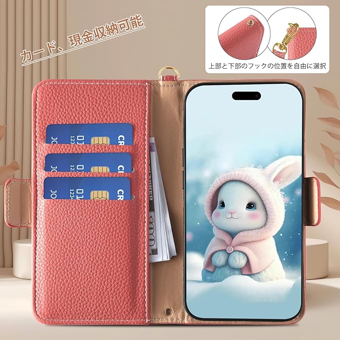 Vokpok対応 Google Pixel 9a ケース 手帳型 PUレザー 可愛いどうぶつ 兎柄 手触りも色合いも あふれる 女性の グーグルピクセル 9A 財布型ケース カード収納機能 スタンド機能 全面保護 Pixel 9A スマホケース 簡約美しい ストラップ付き ある滑らかな手触り 家族、友達の素晴らしい贈り物 ピクセル9a ケース, スイカレッド