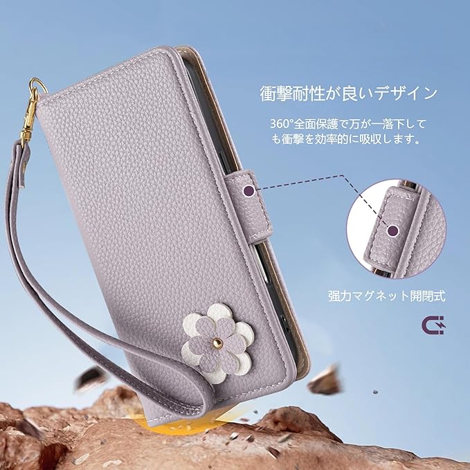 ① Google Pixel 9a ケース 手帳型シンプルかつ洗練されたデザインで,可愛い3Dフラワークラフト 手触りも色合いも高級感あふれる,見た目やデザインともすごく高級感が溢れている。②グーグルピクセル9a ケース シェルは高品質なPU合成皮革を使用し、質感 手触りにも優れています,放熱性や耐衝撃が良く、耐衝撃 耐摩擦 汗や指紋防止塵、埃が入るのも防ぎます;インナーシェルはソフトなTPU素材で、着脱しやすい、縫製も一つずつ丁寧に仕上げられて、落ち着いてる色と合わせて、どんな場合でも相応しいし、プレゼントにもオススメできる手帳型です。③Pixel 9a手帳カバーストラップホールは上下に二つあり、ハンドストラップ付き、お好きな使い方をオプションできる。指先に通して使うのに適した長さで、落下事故の予防になります。ネックスストラップは長時間の仕事で手を解放したい時と旅行する時にオススメ。