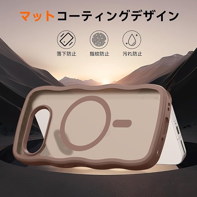 Telaso Google pixel 9A ケース ウェーブ 半透明 MagSafe対応 可愛い グーグル ピクセル9a ケース 波状 ワイアレス充電対応 黄変防止 レンズ保護 滑り止め マット感 薄型 ブラウン