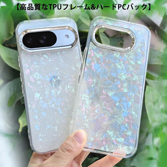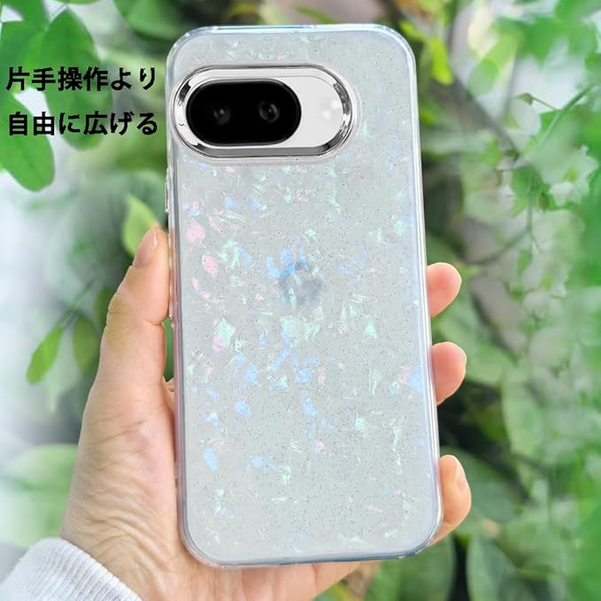 スマホケース 対応 Google Pixel 9a クリアケース 透明 キラキラ フラッシュ シェル柄 貝殻柄 かわいい スフとTPU 傷防止背面 滑り止め 衝撃吸収 おもしろい キャラクター ストラップ穴 女性人気 グルピクセル9a 携帯電話カバー (マルチカラー, Google Pixel 9a)