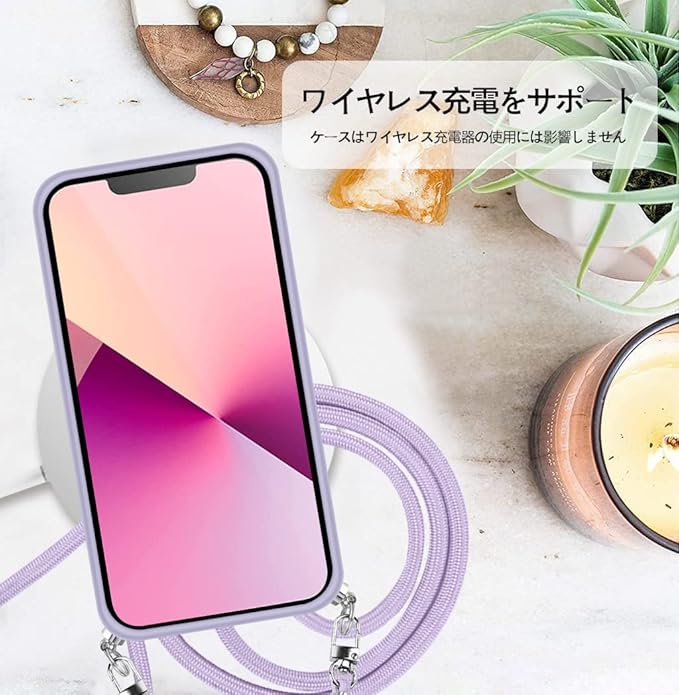 iPhone 13 Pro Max 用 ケース クリア ショルダー iPhone13pro max スマホケース 肩掛け 首かけ 斜めがけ ショルダー ケース 縄掛け カバー 透明 PC背面 TPUバンパー アイフォン13ProMax カバー ストラップ付き 携帯ケース 耐衝撃 薄型 軽量 落下防止 - パープル