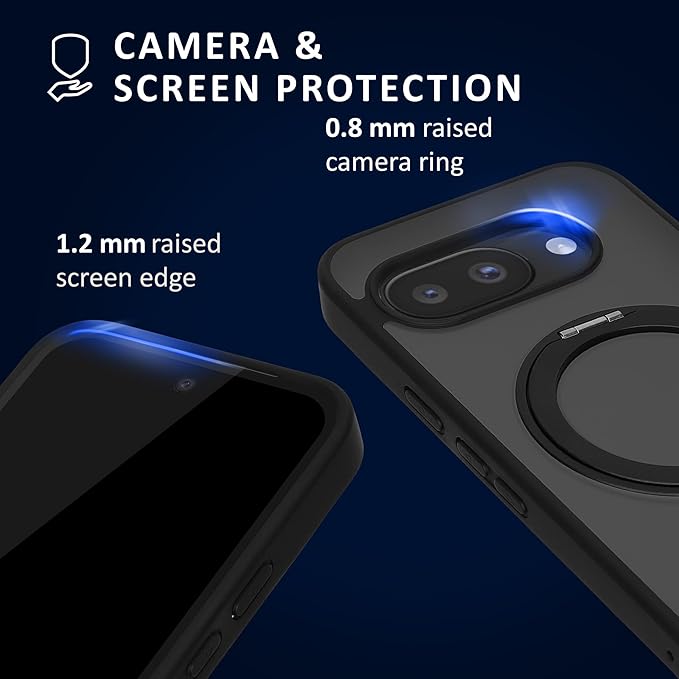 商品タイトル(最適化済み)kalibri スタンドリング付きスマホケース - Google Pixel 9a 対応 360 回転式キックスタンド ハードケース MagSafe対応 - 黒色/半透明